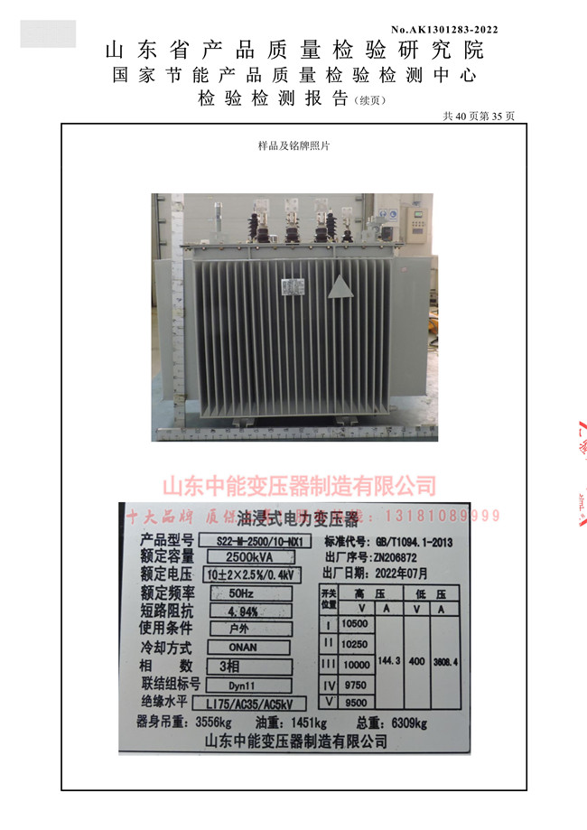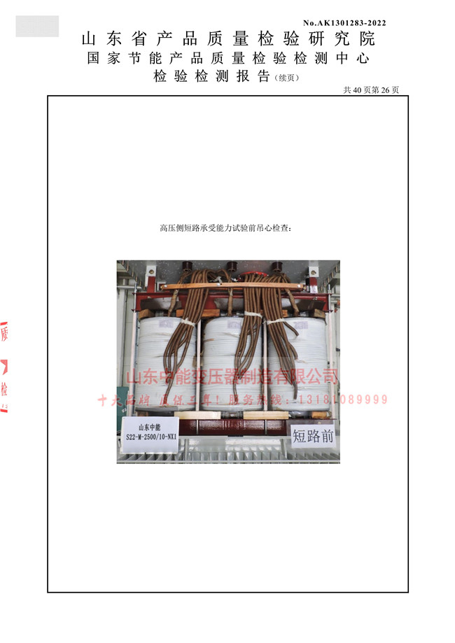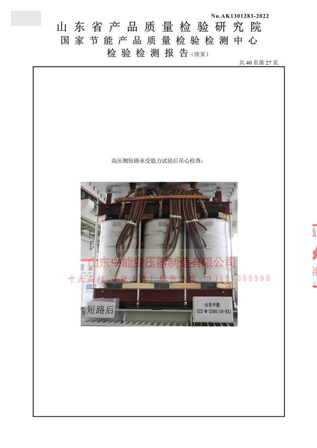 S22系列變壓器檢驗報告 NX1 一級能效 抗短路