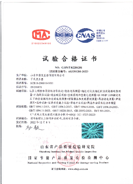 SCB18干式變壓器資質證書